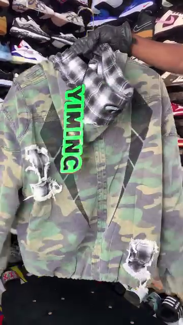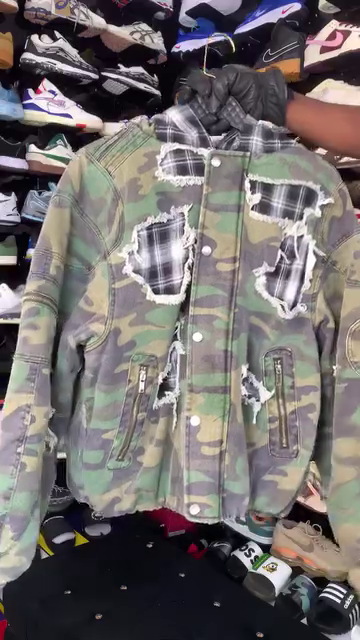 Distressed camouflage bomber jacket