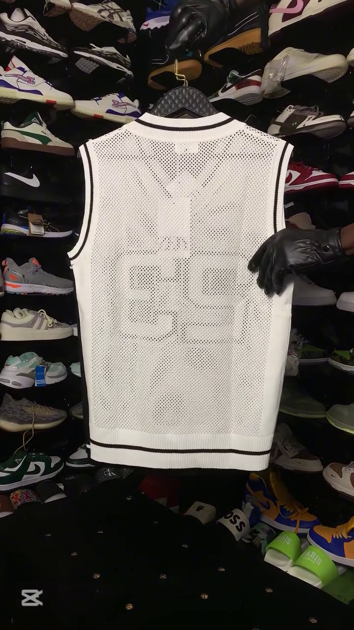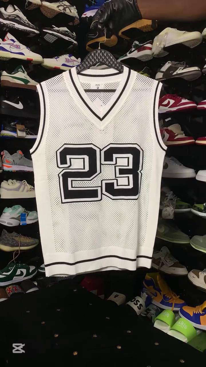 his item is an Off-White Varsity Net Knit Tank, a cotton mesh sleeveless top featuring a large "23" graphic in a nod to Michael Jordan.ย